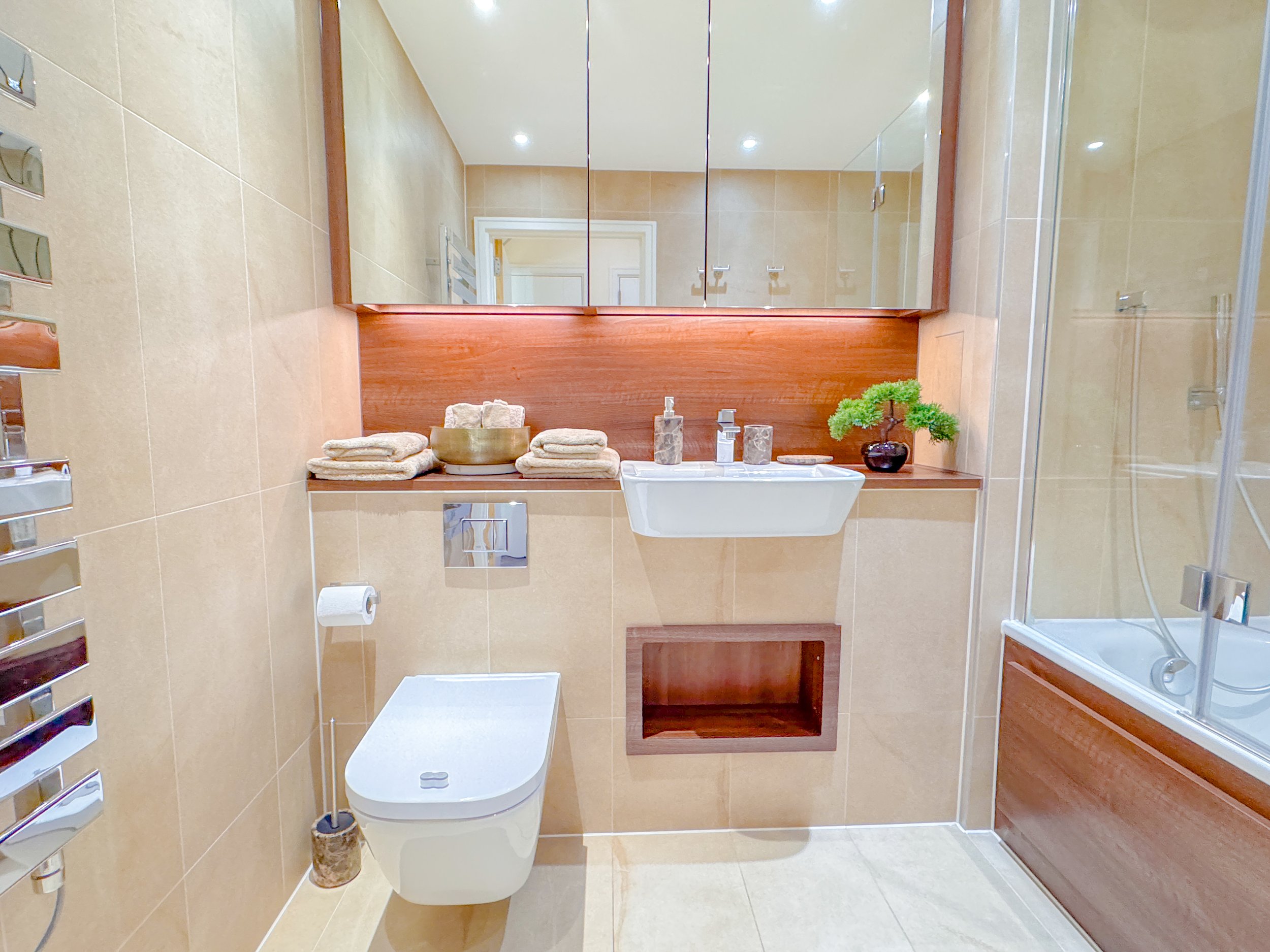 A luxurious two-bedroom, two-bathroom apartment offering heating & cooling, excellent transport links, and immediate access to Battersea and the South Bank.